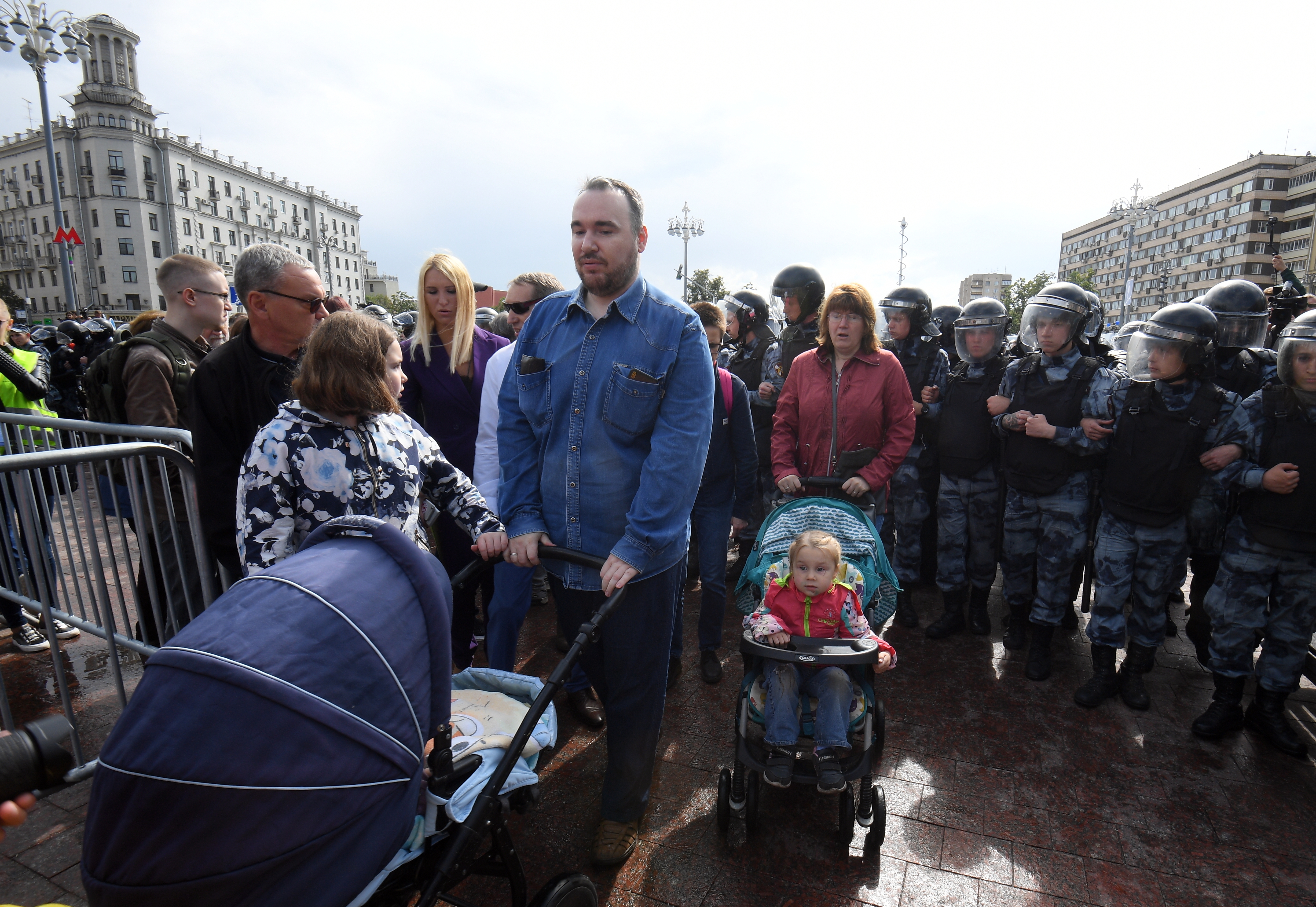 Видео, возмутившее редакцию РЕН ТВ, первой опубликовала в твиттере журналистка The Insider Анна Красноперова: цепочка силовиков медленно вытесняет толпу из сквера, среди отступающих — чета Хомских с детскими колясками, в какой-то момент мужской голос произносит: «Это наше будущее и их будущее».