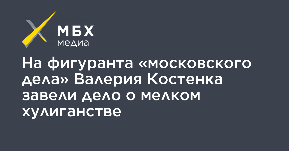 На освобожденного сегодня фигуранта «московского дела» Валерия Костенка завели дело о мелком хулиганстве. Материалы направлены в московское МВД, сообщил «МБХ медиа» адвокат МГКА ФОРТ Гаджи Алиев.