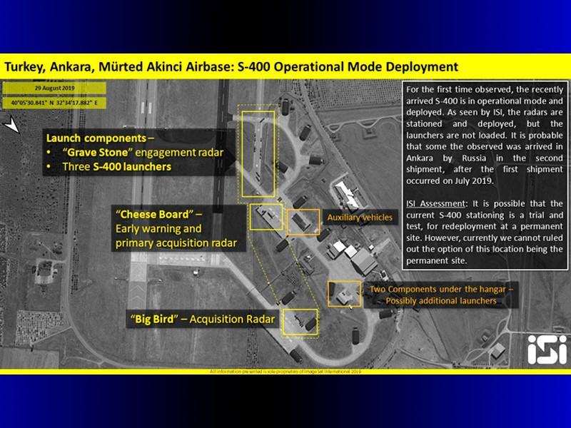 Израильская компания ImageSat International, являющаяся оператором спутника наблюдения Eros-B, опубликовала снимки, на которых показаны элементы зенитно-ракетного комплекса С-400, размещенного на авиабазе Акинчи рядом с турецкой столицей, Анкарой.