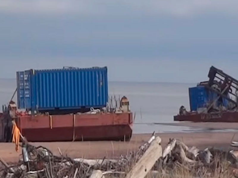 Радиоактивные понтоны / Скриншот видео / tv29.ru 31 августа в 150 метрах от понтонов радиационный фон колебался от 70 до 154 микрорентген в час. После того, как понтоны появились на берегу, дозиметры показывали 750 микрорентген в час.