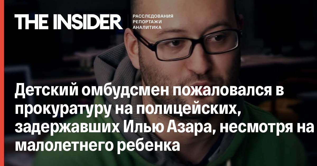 Детский омбудсмен пожаловался в прокуратуру на полицейских, задержавших Илью Азара, несмотря на малолетнего ребенка