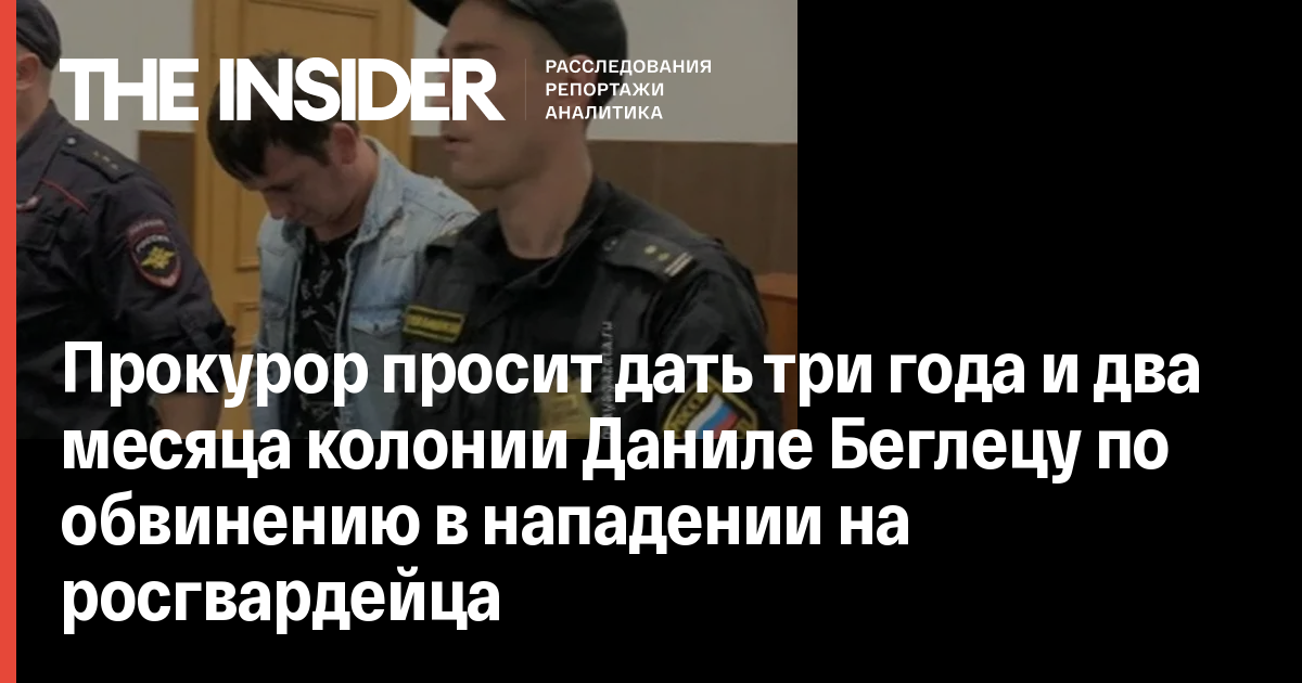 Прокурор просит дать Даниле Беглецу, обвиняемому в нападении на сотрудника Росгвардии, три года и два месяца колонии. Об этом сообщают «Открытые медиа».
