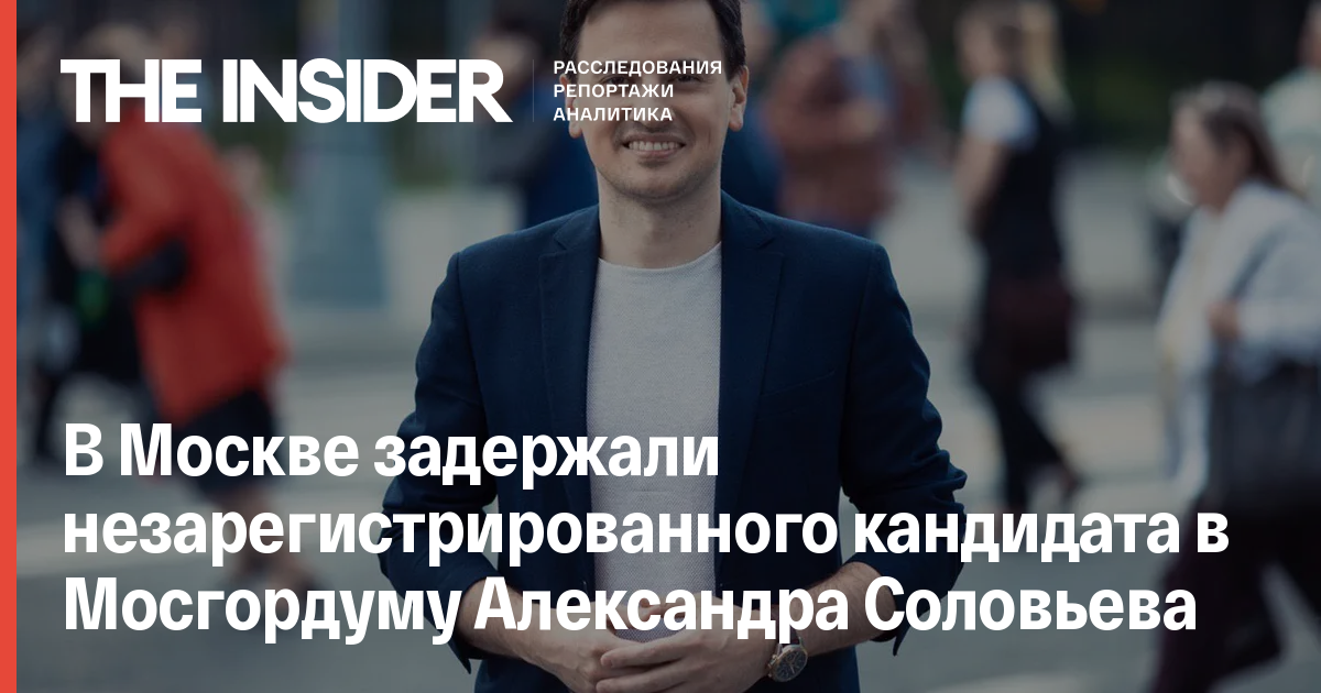 В Москве полиция задержала незарегистрированного кандидата в депутаты Мосгордуму Александра Соловьева. Об этом сообщает «Дождь».