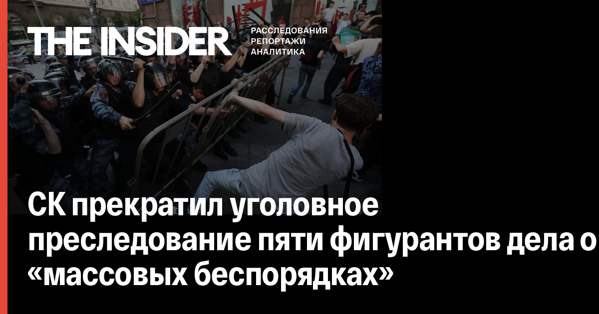 Следственный комитет пришел к выводу об отсутствии состава преступления в действиях пяти фигурантов «дела о массовых беспорядках» — Сергея Абаничева, Даниила Конона, Валерия Костенка, Владислава Барабанова и Дмитрия Васильева.