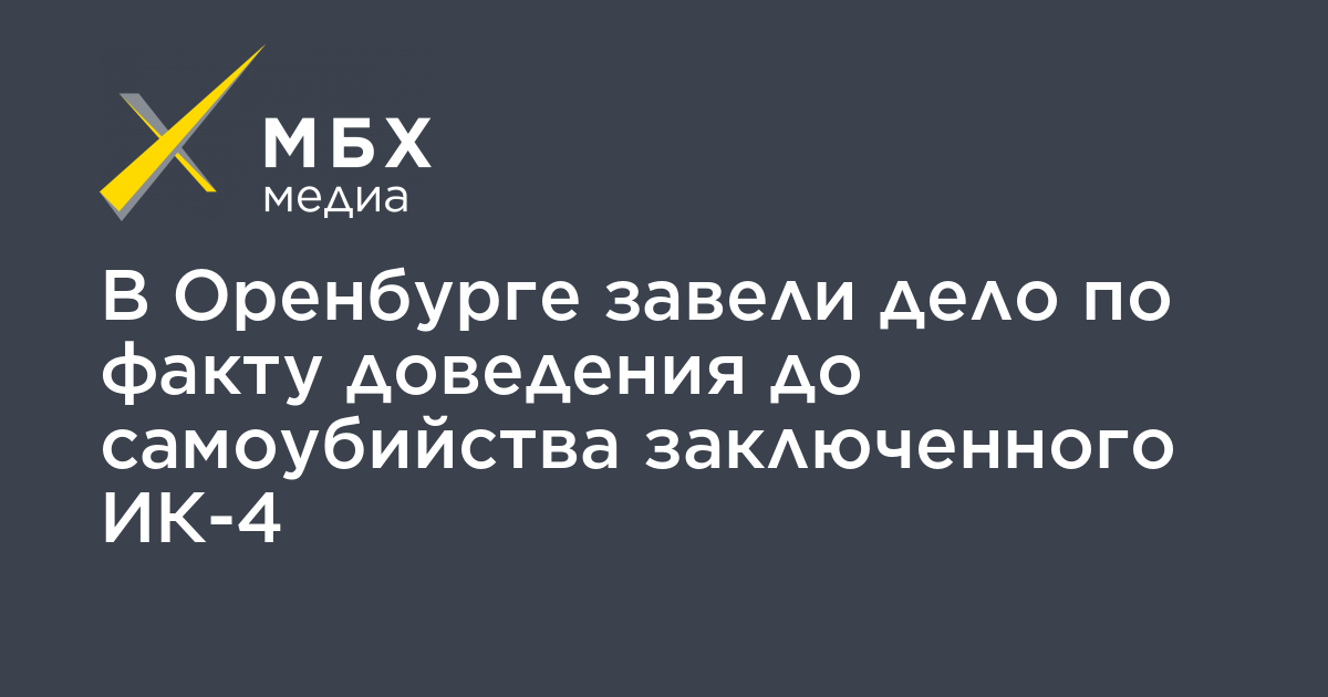 В Оренбурге завели дело по факту доведения до самоубийства заключенного ИК-4