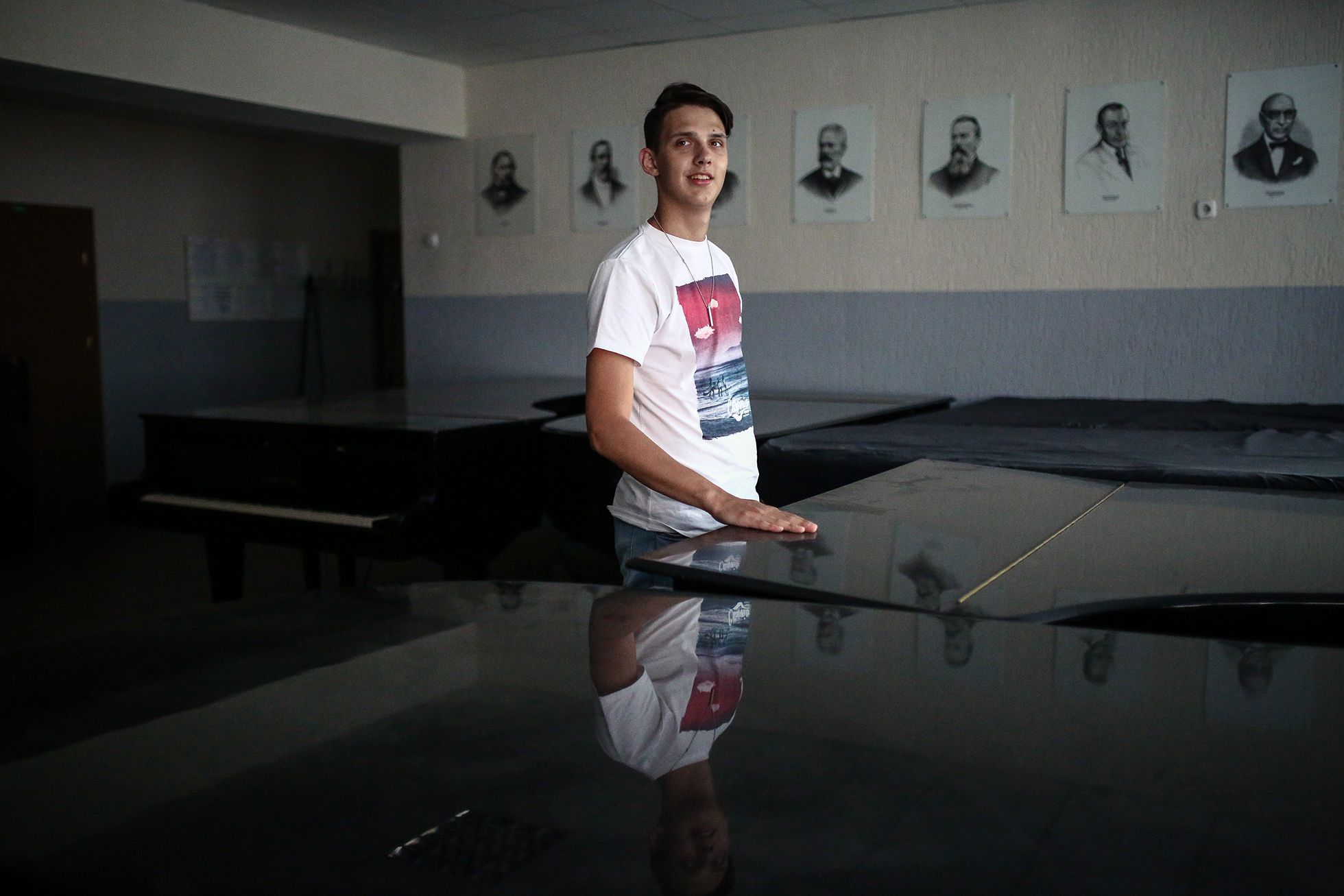 Все вместе они поднимаются на пятый этаж — там на время ремонта составили все рояли. Ян наигрывает что-то из Рахманинова, Тима разглядывает портреты композиторов на стенах и произносит как будто что-то из детства: «Григ-Григ, Бах-Бах. Вы готовы? Вы хотите, чтобы я начал концерт?» — обращается он к невидимой публике у портрета Бетховена.