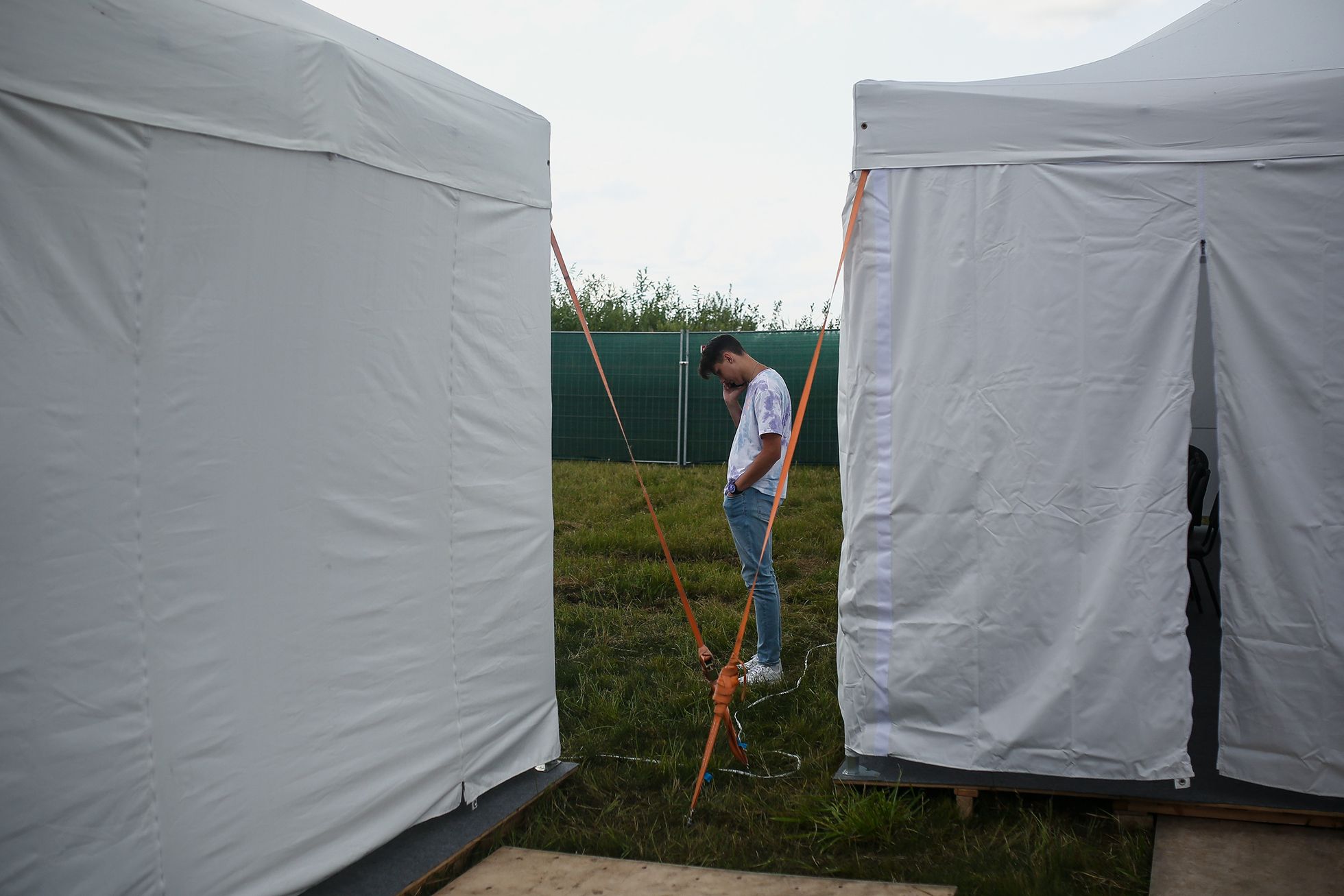 Вместе с Белорусских и другими участниками лейбла Kaufman на фестиваль едет концертный директор Тимы Сергей Лавкет — свекор продюсера Александра Розниченко. Перед выходом он предупреждает остальных, что на фестивале, который проходит под открытым небом, скорее всего, будет «сральник», и советует не надевать белую обувь. К Лавкету прислушивается только Розниченко — единственные темные кроссовки в коридоре принадлежат ему.