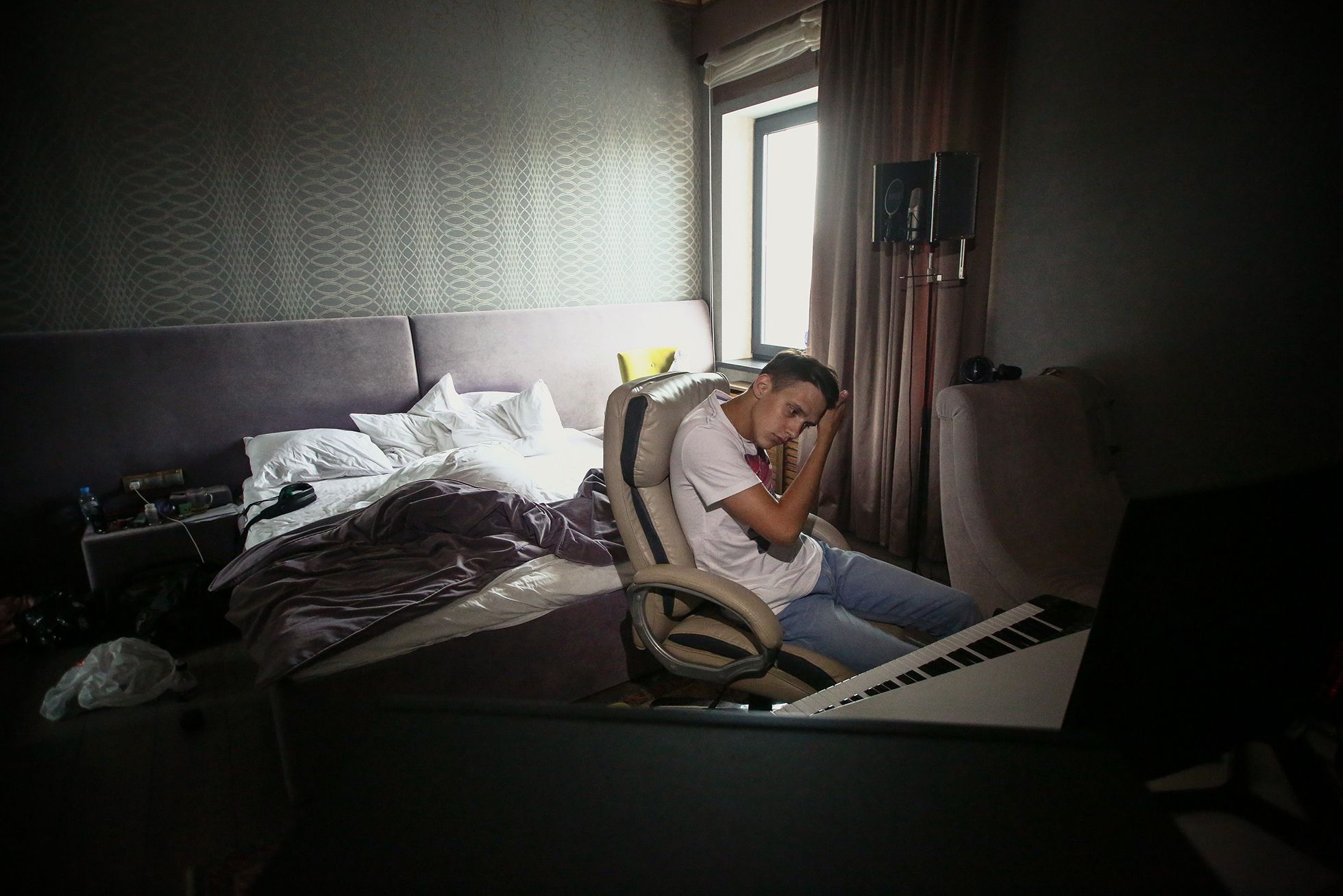 Один из главных предметов здесь, по словам продюсера, — пианино. «У нас есть синтезатор, но преимущество фоно в том, что тебе не надо включать комп, заходить в программу, подключать инструмент, — объясняет Розниченко. — Так музыка сочиняется гораздо быстрее». Продюсер признается, что у него нет музыкального образования и получать его он не намерен — чтобы «не роботизировать» свои мозги: «Иногда я на шару что-то тыкну — и может получиться что-то интересное».