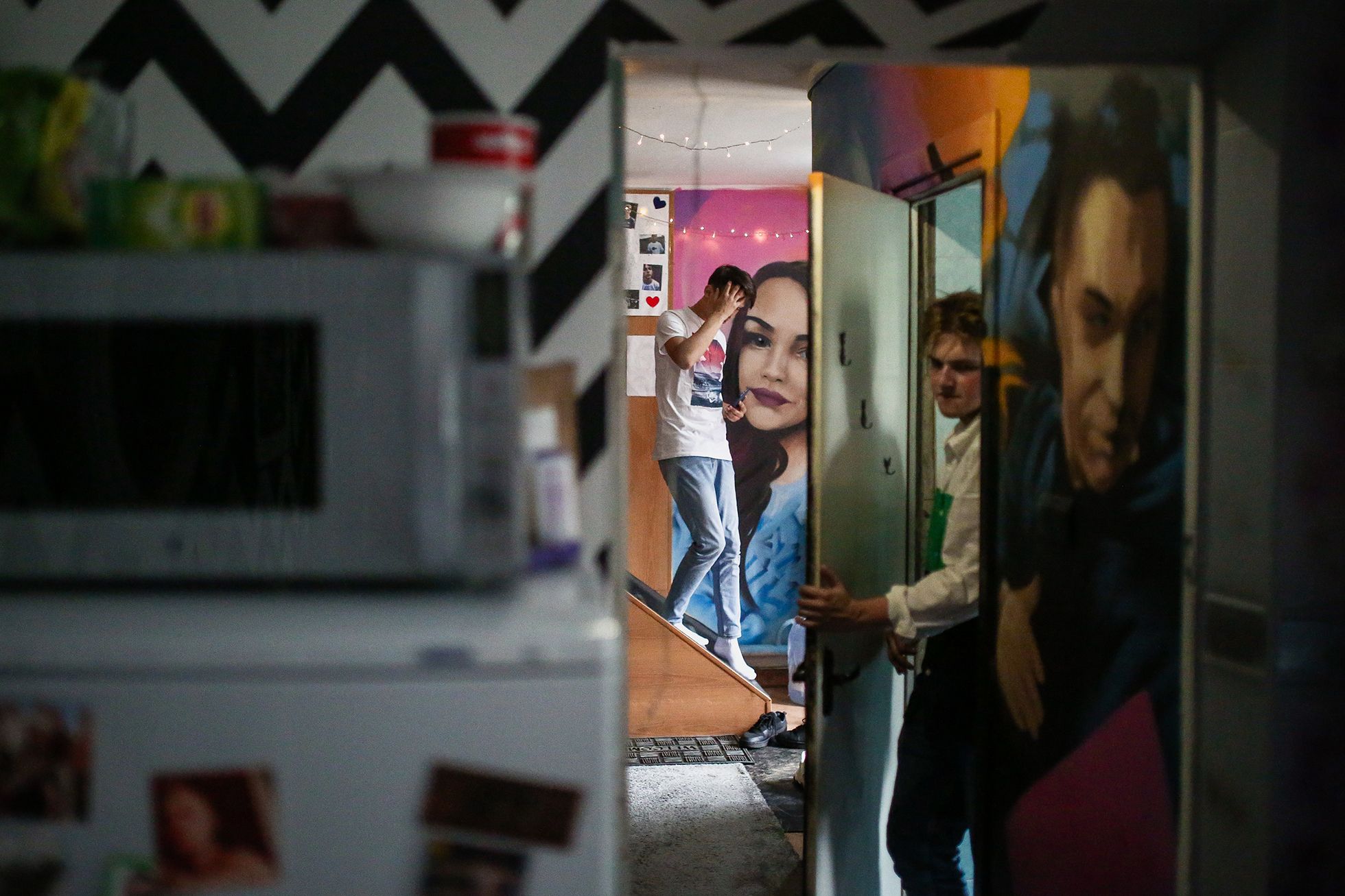 В прихожей — дюжина пар кроссовок; кроме Розниченко и его супруги, администратора и менеджера Тимы Белорусских Александры Розниченко, в доме на 400 квадратных метров живут и работают еще четыре человека: аранжировщик Ян Супоненко, звукорежиссер Артем Мирный, менеджер двух других артистов лейбла Вероника Иванько и менеджер отдела мерча Александра Степуро. Всем им от 20 до 30 лет.