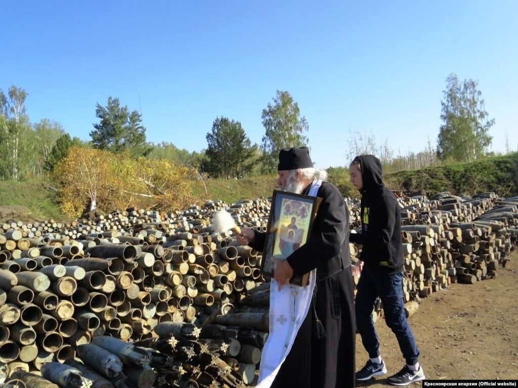 В воинской части под Ачинском Красноярского края, где в августе дважды взрывались склады с боеприпасами, местный священник провёл молебен, окропил святой водой оставшиеся склады, личный состав и технику, сообщается на сайте Красноярской епархии.