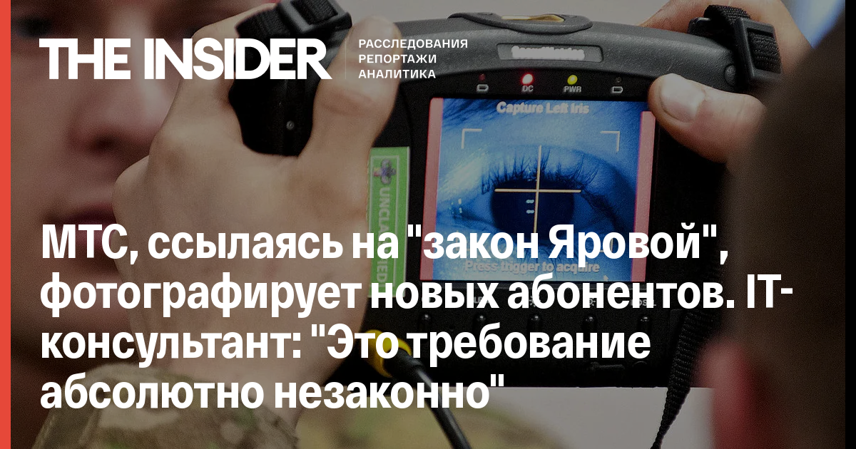 По словам Здольникова, требование сфотографировать нового абонента абсолютно незаконно. «После публикации этого поста несколько человек мне написали, что сталкивались с фотографированием уже достаточно давно, около года назад. Я думаю, что это совсем никак не связано с пакетом Яровой. Скорее всего, МТС собирает биометрию, чтобы попытаться запустить сервисы, которые на ней основаны. Точно так же, как это сейчас делает Сбербанк. А предлог про Яровую, скорее всего, прописан в инструкции для персонала на случай таких вопросов у клиентов», - пояснил The Insider эксперт.