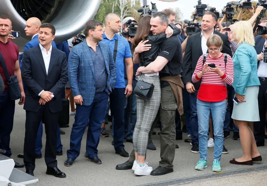 Вместе с родными украинских моряков и украинских политзеков (среди которых один из самых известных — режиссер Олег Сенцов) у трапа встречал лично президент Владимир Зеленский. Журналисты могли вести прямые трансляции этой эмоциональной встречи.