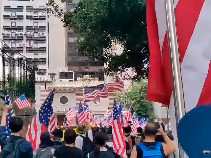 Участники протестов в Гонконге в воскресенье с пением гимна США и плакатами, призывающими Штаты оказать помощь в "освобождении" города от контроля со стороны Пекина, прошли к зданию американского генерального консульства и передали дипломатам петицию, передает "Интерфакс".