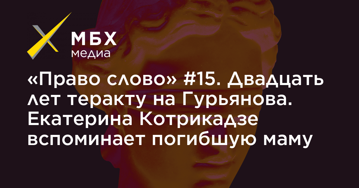 «Право слово» #15. Двадцать лет теракту на Гурьянова. Екатерина Котрикадзе вспоминает погибшую маму