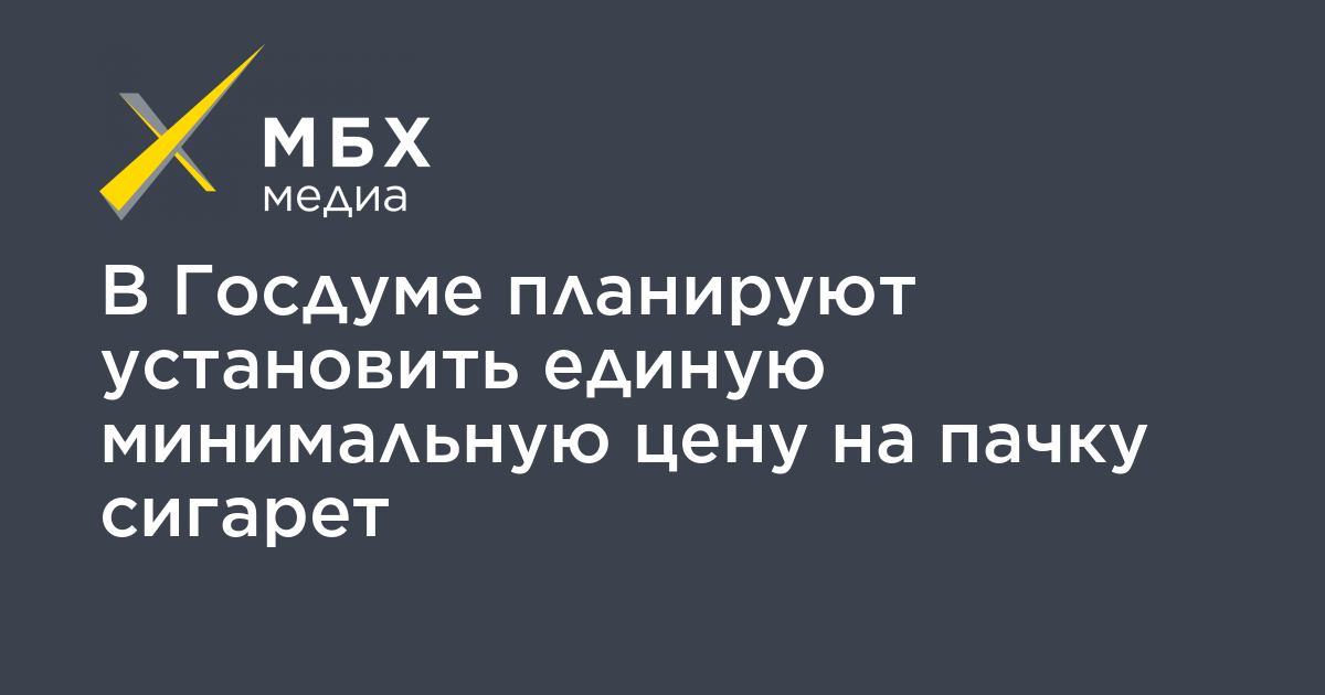 В Госдуме планируют установить единую минимальную цену на табачные изделия, сообщает «Парламентская газета» со ссылкой на первого заместителя председателя комитета нижней палаты парламента по бюджету и налогам Сергея Катасонова.