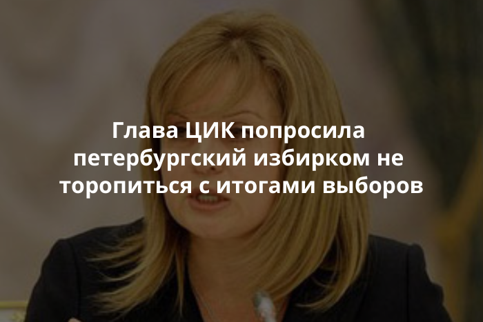 Глава ЦИК попросила петербургский избирком разобраться с жалобами и не торопиться с итогами выборов