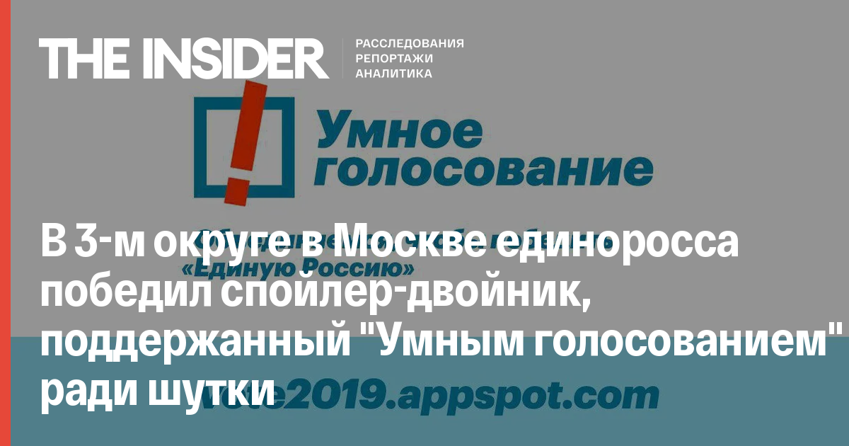 В 3-м округе в Москве единоросса победил спойлер-двойник, поддержанный "Умным голосованием" ради шутки