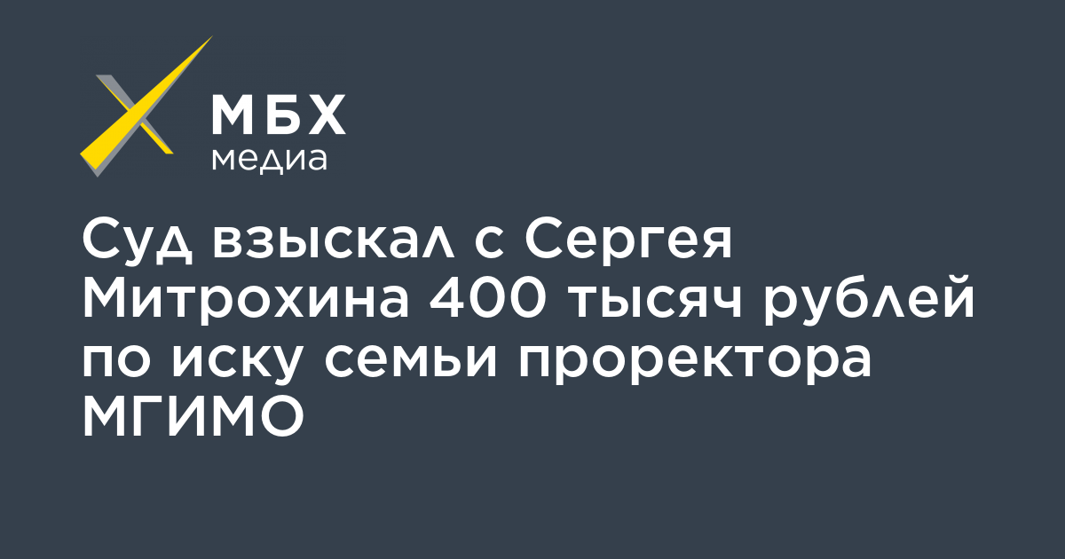 Хамовнический суд Москвы взыскал 400 тысяч рублей с депутата Мосгордумы Сергея Митрохина по иску семьи проректора МГИМО Натальи Кузьминой из-за публикаций на сайте радиостанции «Эхо Москвы». Об этом сообщает корреспондент «МБХ медиа».