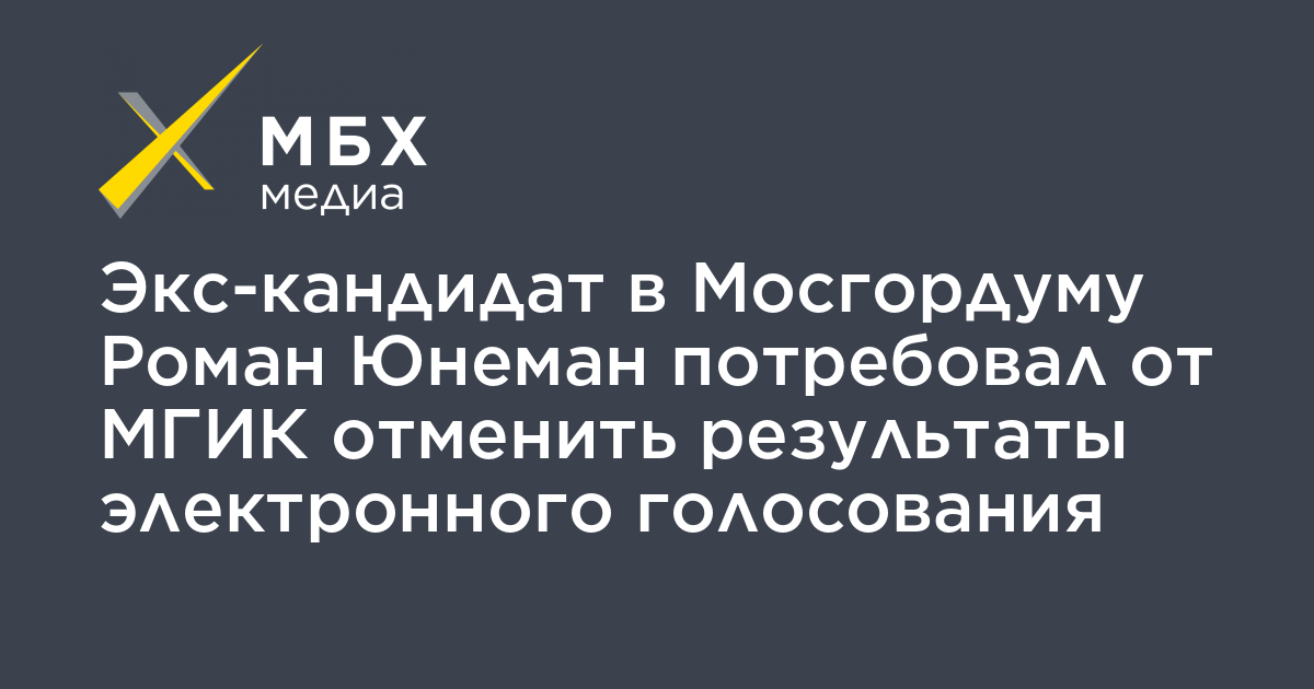 Экс-кандидат в депутаты Мосгордумы Роман Юнеман подал жалобу в Мосгоризбирком на результаты электронного голосования в 30 округе, потребовав признать их недействительными. Об этом он сообщил «МБХ медиа».