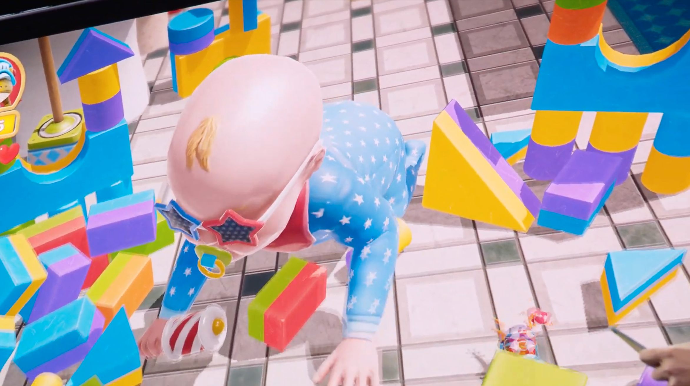 Вот этот огромный ребенок! Но главный герой игры — лягушка (фууу)