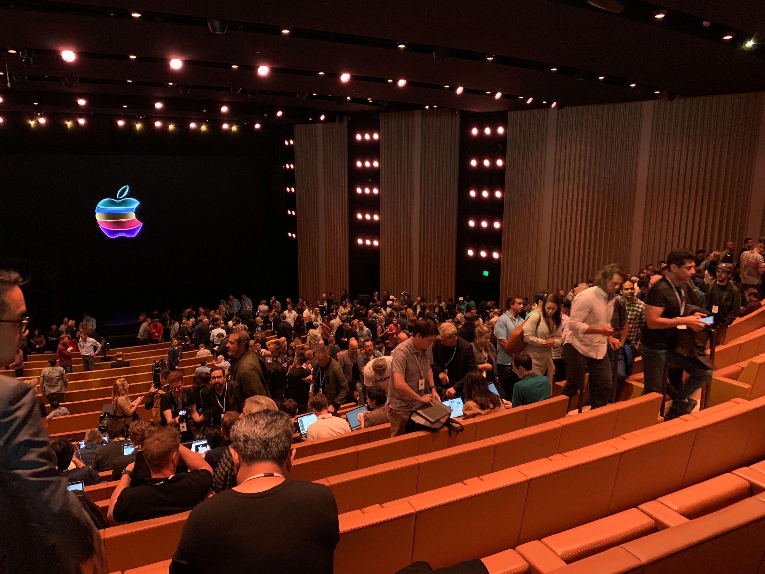 Привет всем! Ух, я уже нахожусь в зале, тут играет громкая (но приятная!) музыка. Журналисты и блогеры рассаживаются по местам, сотрудники Apple следят, чтобы всем хватило мест. Презентация начнется совсем скоро.