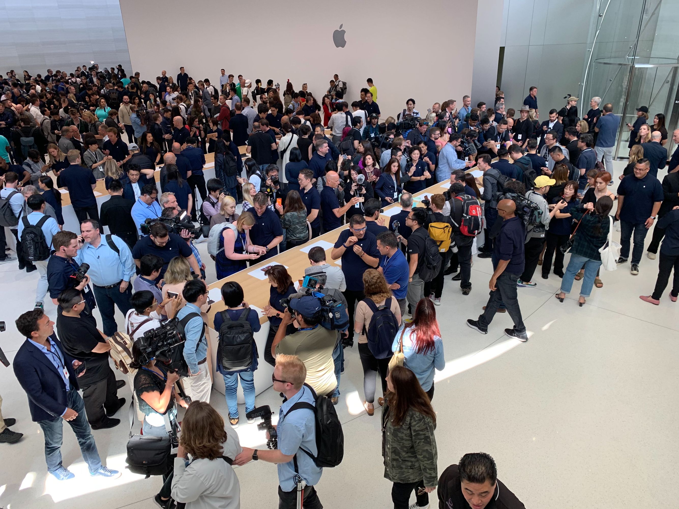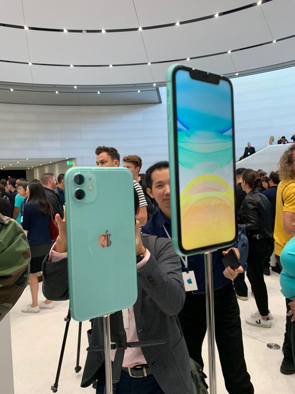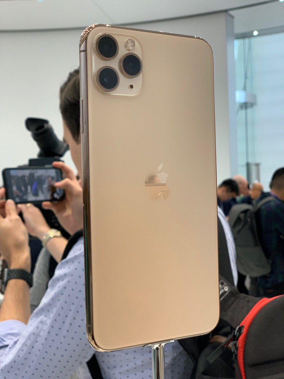 «Тут толпы людей — журналисты буквально расталкивают друг друга за право как-нибудь красиво сфоткать новые айфоны. Слышу разговоры в толпе: какие-то фотографы обсуждают „обесценивание“ скилла. Дескать, через пару лет любой снимок с айфона не будет уступать кадрам, сделанным профессионалами».