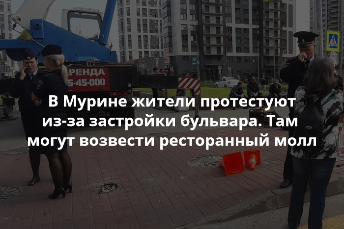 Жители Мурина днем 10 сентября вышли на акцию против застройки бульвара Менделеева. Об этом «Бумаге» сообщили очевидцы.