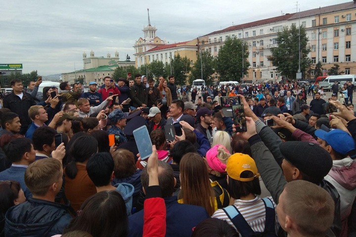 Цыренов по-прежнему требует, чтобы к нему на переговоры вышли чиновники и прокурор Бурятии. На площадь Советов вернулся сенатор Вячеслав Мархаев.