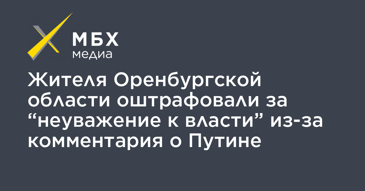Жителя Оренбургской области Владимира Шацких оштрафовали на 30 тысяч рублей по статье о «неуважении к власти» (часть 3 статьи 20.1 КоАП) из-за комментария про Владимира Путина. Об этом сообщил «МБХ медиа» адвокат правозащитной группы «Агора» Эльдар Шарафутдинов.