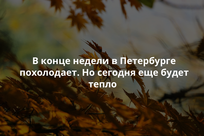 В пятницу и субботу в Петербурге ожидается похолодание. Это следует из прогноза «Северо-Западного управления по гидрометеорологии и мониторингу окружающей среды».