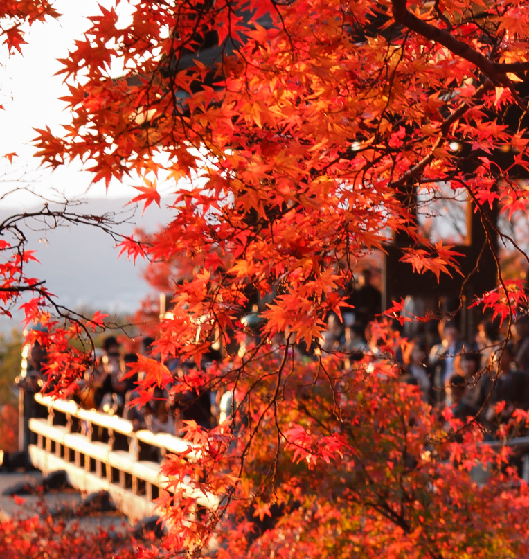 Осенью я застала Момидзи-гари и наблюдала это явление с горы Такао, расположенной недалеко от Токио. Оттуда открываются живописные виды на японскую столицу и видно верхушку горы Фудзи. Клены тогда еще не были полностью красными, больше преобладали оттенки от зеленого до оранжевого.