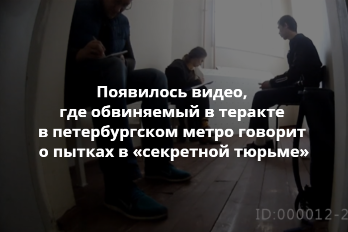 На ютьюб-канале Piter Case появилось видео «Дело о питерском теракте: пытки в секретной тюрьме» (это единственный ролик на канале). На нем обвиняемый по делу о теракте в петербургском метро 3 апреля 2017 года Аброр Азимов рассказывает, что перед официальным задержанием его пытали в «секретной тюрьме». На это обратила внимание член ОНК Яна Теплицкая, которая на видео интервьюирует Азимова.