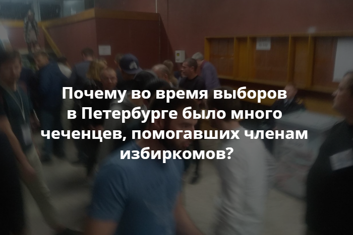 В единый день голосования, 8 сентября, во многих участковых избирательных комиссиях Петербурга дежурили по несколько чеченцев. По словам наблюдателей, они выполняли задания членов избиркомов и запрещали вести видеосъемку. Прийти в УИКи их попросил руководитель представительства главы Чечни в СЗФО Ислам Хизриев, пишет «Фонтанка».