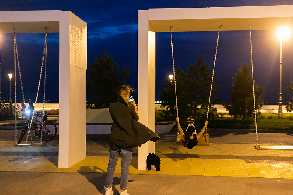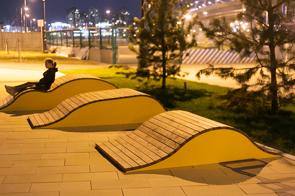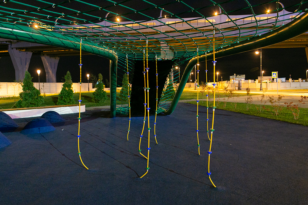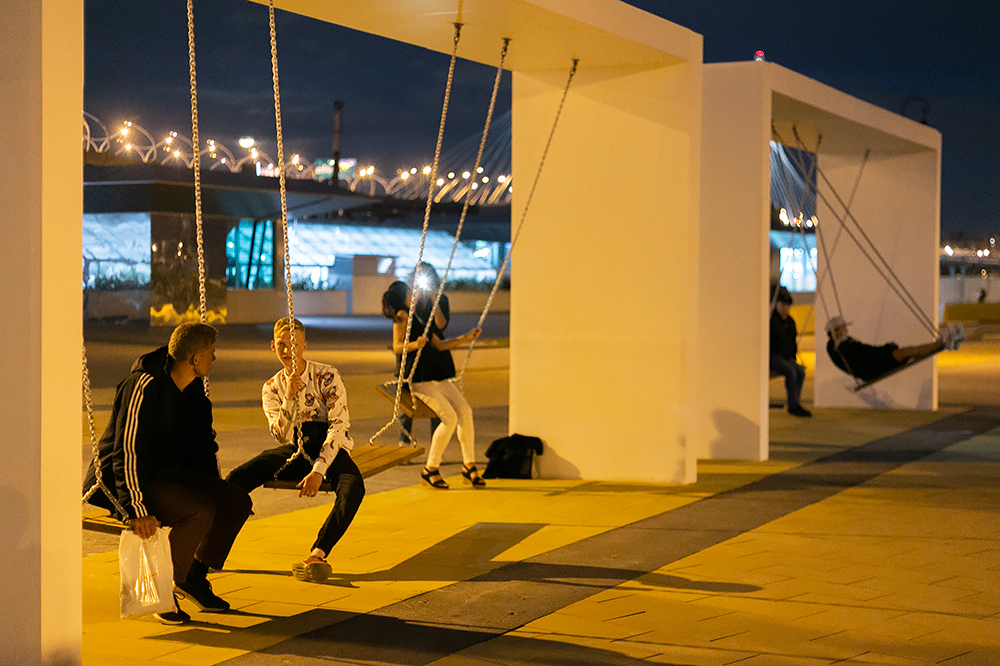 Вдоль Южной дороги на Крестовском острове появилось новое общественное пространство со спортивной площадкой, скамейками, качелями и бесплатными биноклями.
