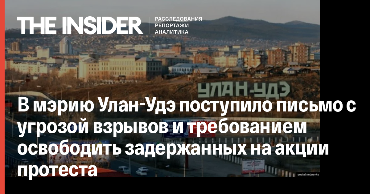 Мэрия Улан-Удэ заявила, что получила сообщение с угрозой взрывов в городе и с требованием назначить перевыборы мэра города и освободить всех задержанных в ходе акции протеста на площади Советов. Об этом пишет «Байкал-Daily».
