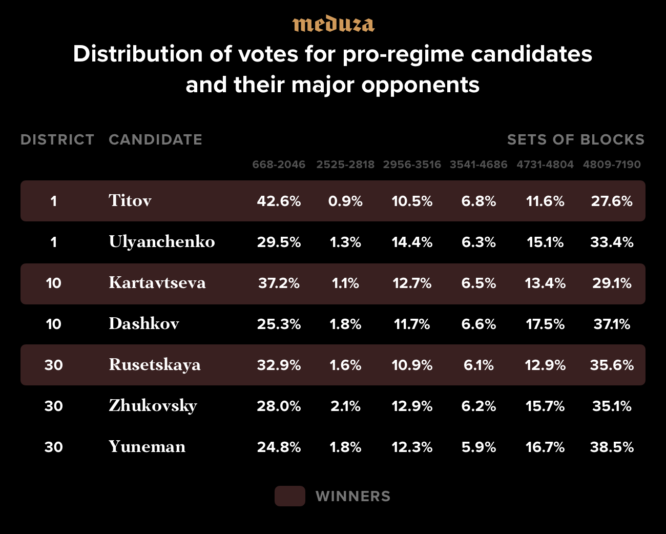 In three of Moscow’s voting districts, the city’s September 8 legislative elections also served as a test for a new online voting system. In one of those districts, the online vote proved decisive: While independent candidate Roman Yuneman won the most paper ballots in District 30, he lost to pro-regime candidate Margarita Rusetskaya thanks to the latter’s electronic results. Moscow City Hall published the results of the city’s online voting but did not provide access to the raw voting data behind those results. We found the key to that data, decrypted all of Moscow’s online votes, and reconstructed the three races that used online voting down to the minute.
