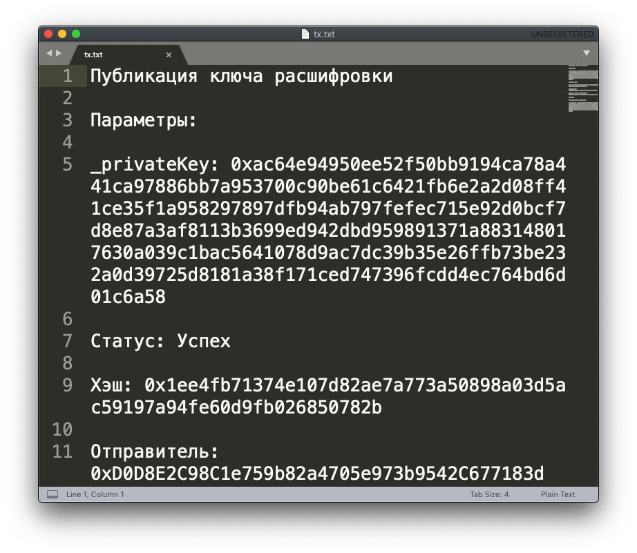 Once voting had concluded and a final CSV file containing data about 9,810 votes had been published, Moscow officials reconstructed a private key to decrypt those votes. The key had to be pieced together from fragments that had been entrusted to seven different officials in advance. Unexpectedly, the reconstructed key was entered into the voting experiment’s public blockchain. Meduza was able to find the block that contained it and the transaction itself through the web interface for online voting observers before access to the blockchain was shut down.
