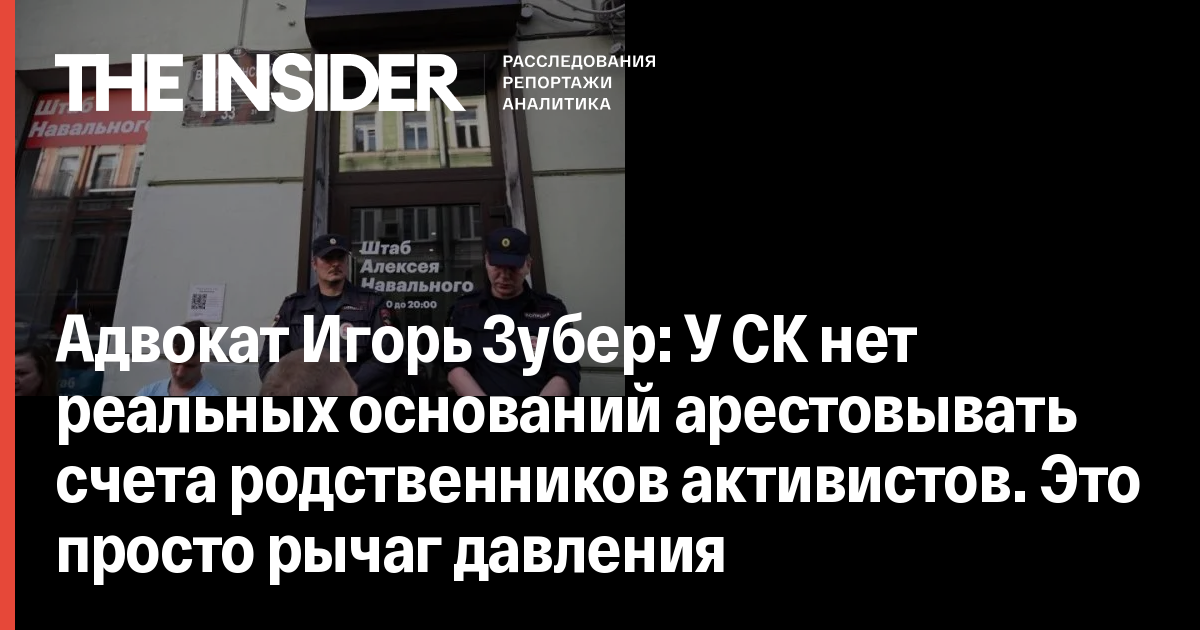 Адвокат Игорь Зубер: У СК нет реальных оснований арестовывать счета родственников активистов. Это просто рычаг давления