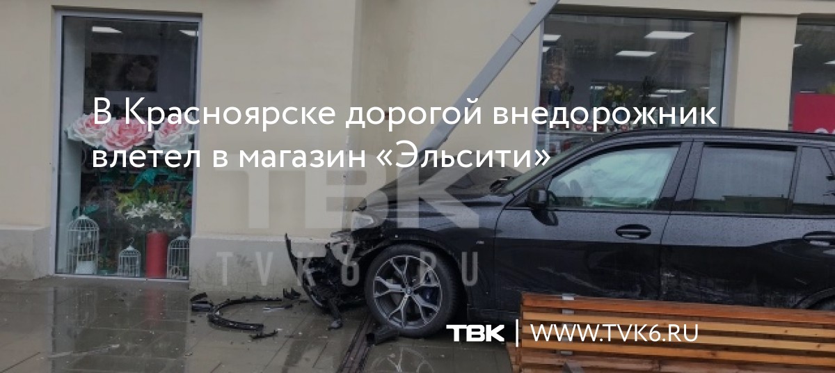 В Красноярске дорогой внедорожник влетел в магазин «Эльсити»