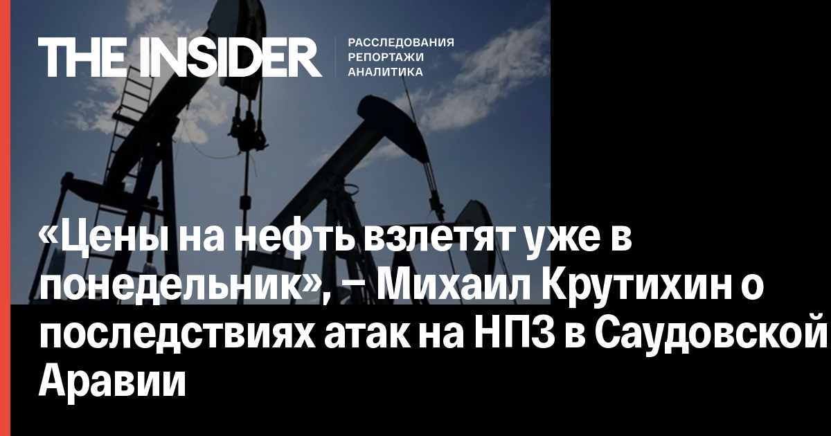 «Цены на нефть взлетят уже в понедельник», — Михаил Крутихин о последствиях атак на НПЗ в Саудовской Аравии