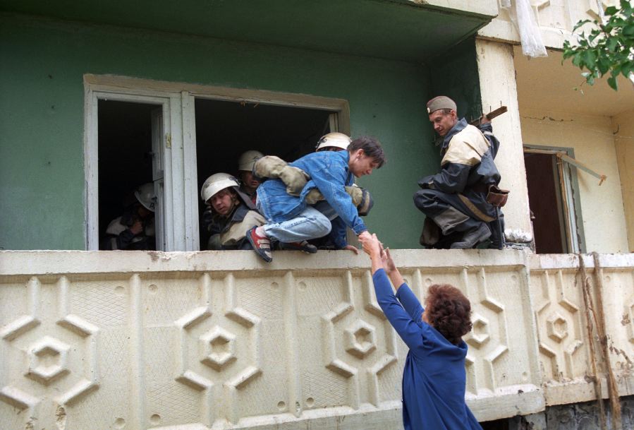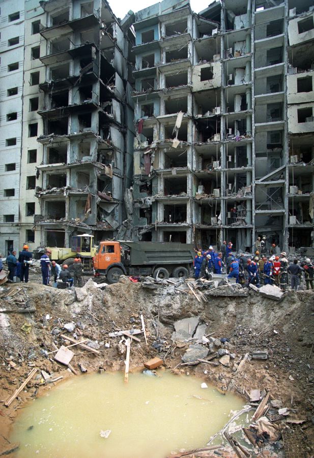 Спасатели и пожарные возле дома, разрушенного взрывом 16 сентября 1999 годаФото: EPA/YURI KOCHETKOV Теперь на наших глазах произошло заказное убийство… Мне только 15 лет. Что же будет дальше?”