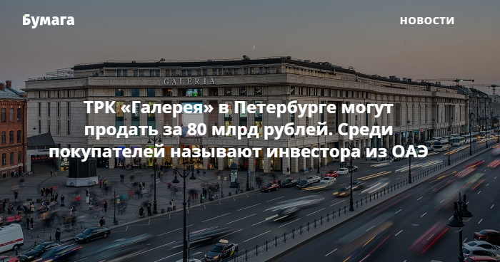 «Галерею» в Петербурге могут продать за 80 млрд рублей