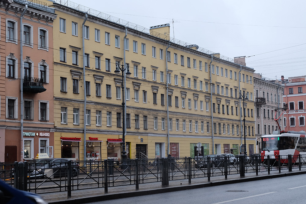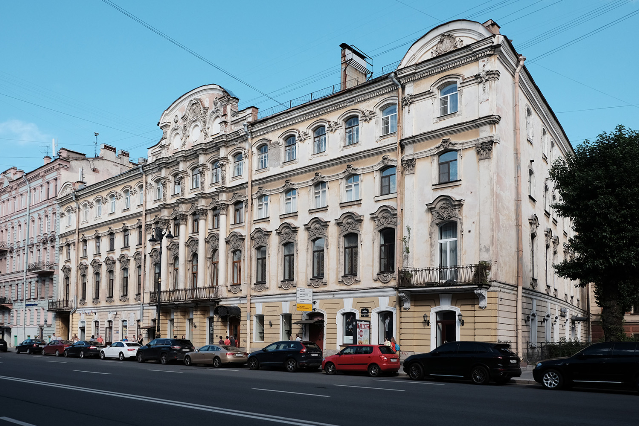 В 1874 году на этом участке строит дом еще молодой и не очень известный архитектор Павел Сюзор (автор Дома книги, Общества взаимного кредита и других видных построек конца XIX века). В 1878-м здесь — в той же парадной, что и младший брат — снимает квартиру композитор Петр Ильич Чайковский. А с 1894 по 1917 год здесь располагались меблированные комнаты Анны Леонтьевны Францкевич, которая прославились своими мошенническими схемами.