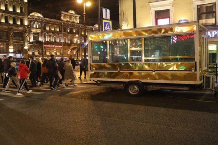 На Невском проспекте уже около трех недель припаркован золотой прицеп с затонированными стеклами и шторками, который можно арендовать на любой срок от часа. Об этом первыми сообщили жители Центрального района во «ВКонтакте», а затем подробнее рассказала «Фонтанка».