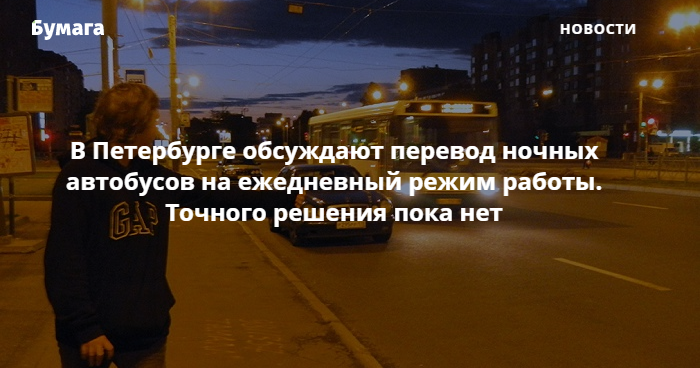 16 сентября «Коммерсантъ» со ссылкой на комитет по транспорту сообщил, что в Петербурге специалисты и чиновники обсудят на совещании корректировки работы ночного общественного транспорта. После этого некоторые СМИ переписали новость, сообщив о возможных изменениях как о случившемся факте. Однако точного решения по этому вопросу пока нет.