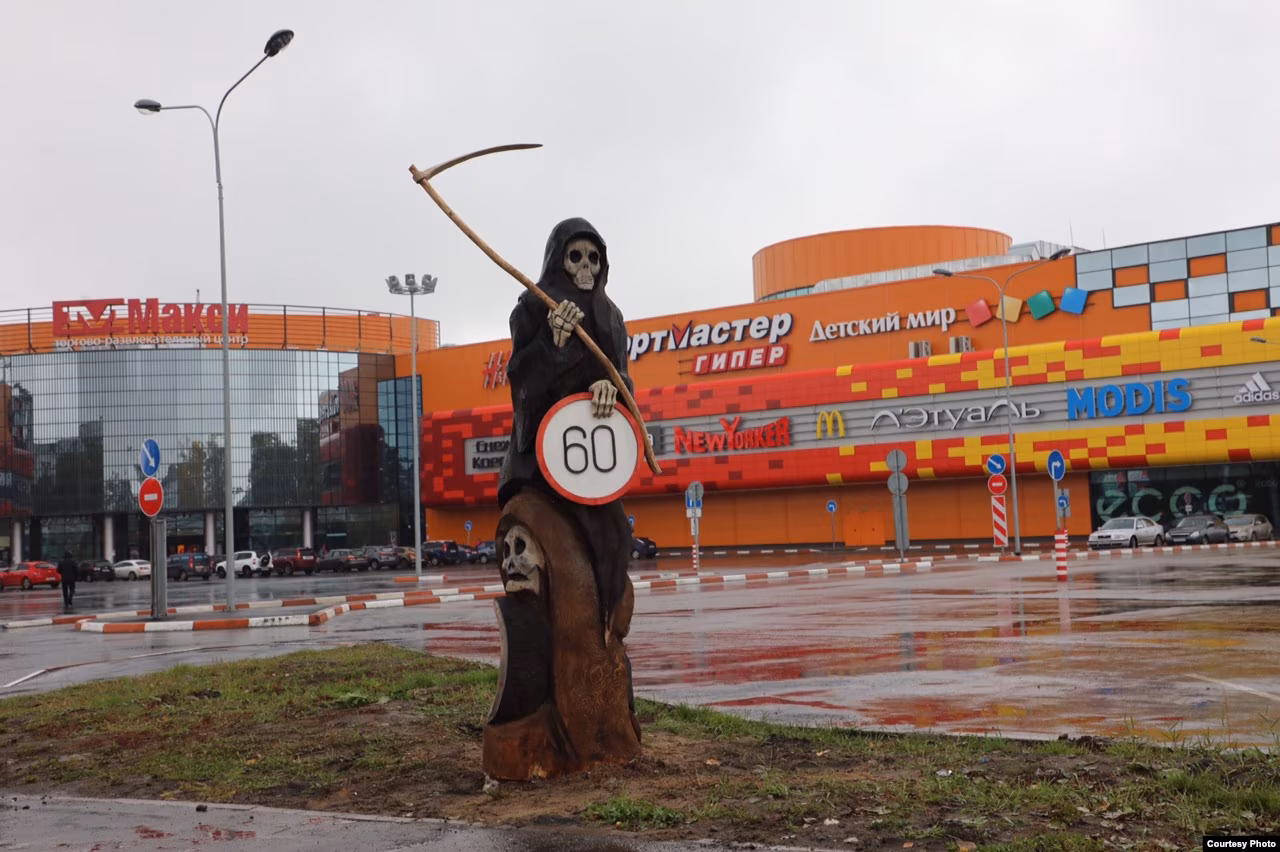 Фигуру смерти с косой, которая должна была предупреждать водителей о скоростном режиме, украли неизвестные, сообщила пресс-служба администрации Архангельска.