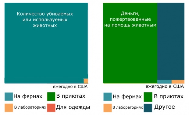 Когда речь заходит о помощи животным, люди намного чаще вспоминают тех, про кого обычно слышат по телевидению или встречают на улице. И намного реже – про животных на промышленных фермах. Так, согласно расчетам Animal Charity Evaluators, большинство пожертвований в США идет в приюты и лишь малая часть – организациям, чья деятельность направлена на помощь фермерским животным.