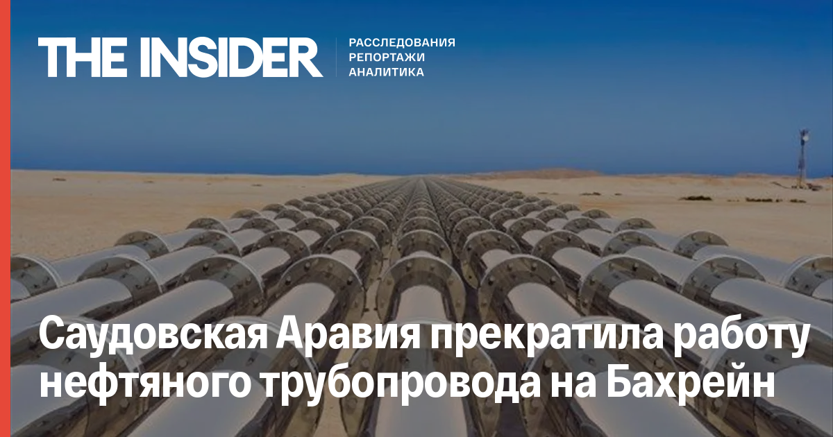 Саудовская Аравия прекратила работу нефтяного трубопровода на Бахрейн, который перекачивает 220-230 тысяч баррелей нефти компании Saudi Aramco в сутки. Об этом сообщает Reuters.
