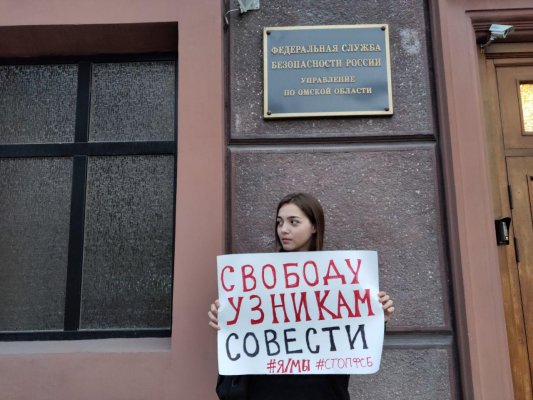 Олейникову задержали во время одиночного пикета у здания ФСБ Омска в поддержку фигурантов «московского дела».