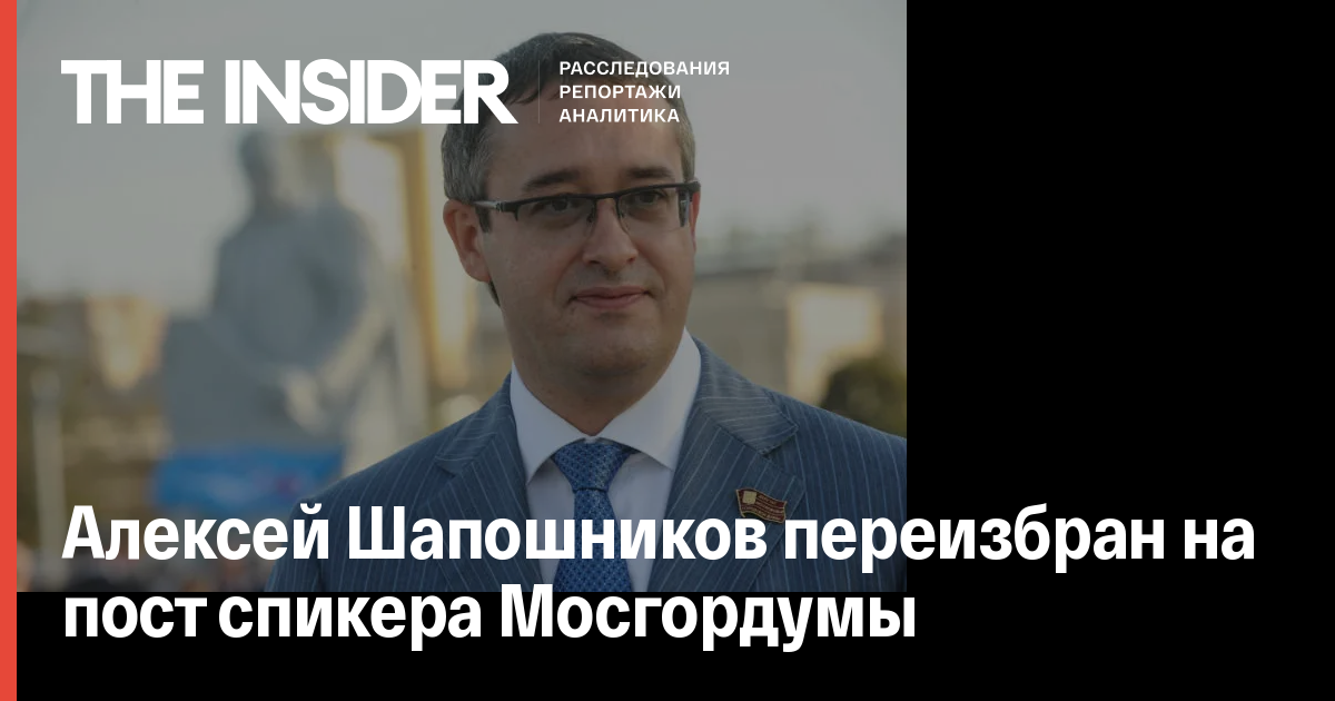 Шапошников занимал пост председателя Мосгордумы прошлого созыва — в 2014–2019 годах. Ранее Фонд борьбы с коррупцией рассказал о том, что Шапошников владеет семикомнатным пентхаусом в центре Москвы.
